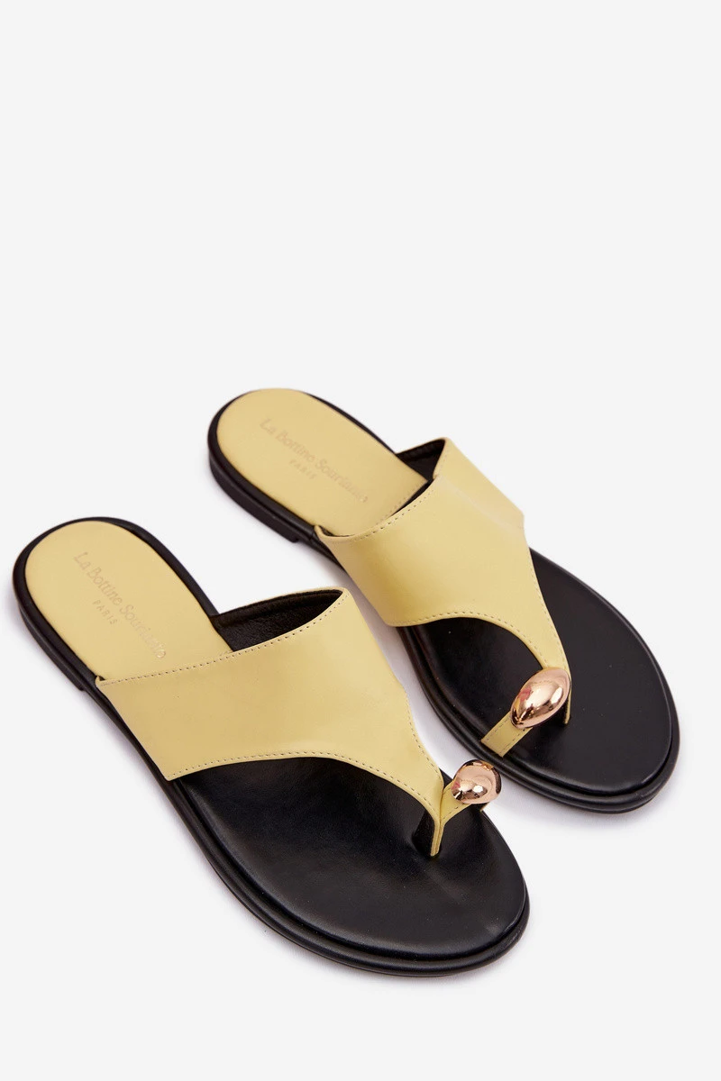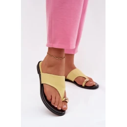 Přidání recenze k Dámské ploché eko kožené nazouváky se zlatým detailem Žluté Lavessa