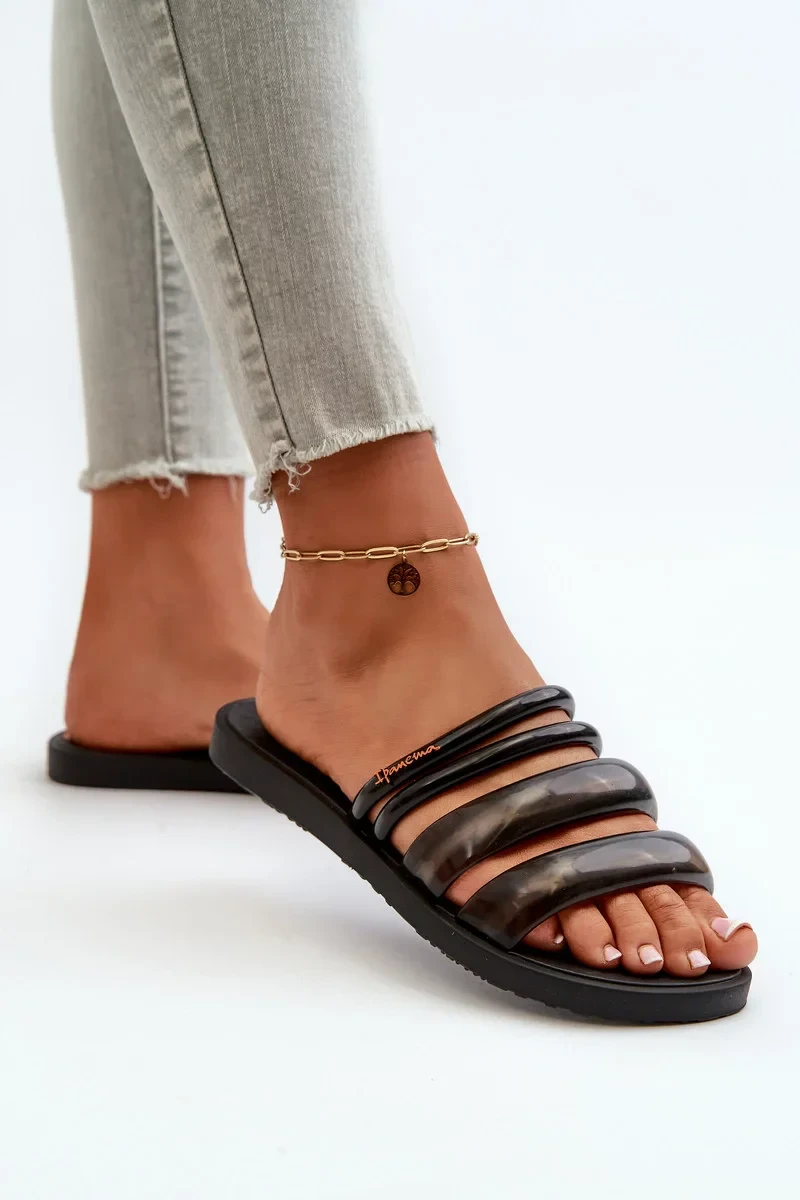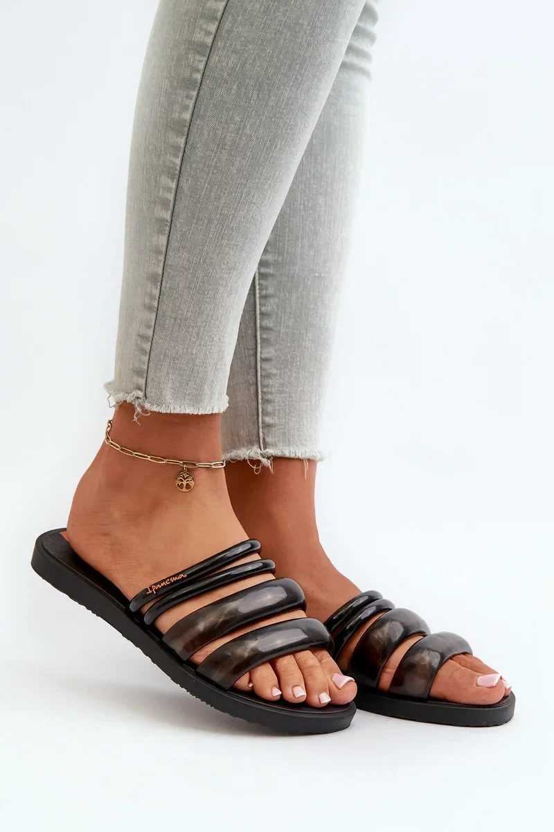 Dámské ploché gumové pantofle Ipanema Puffer Tiras Fem Black
