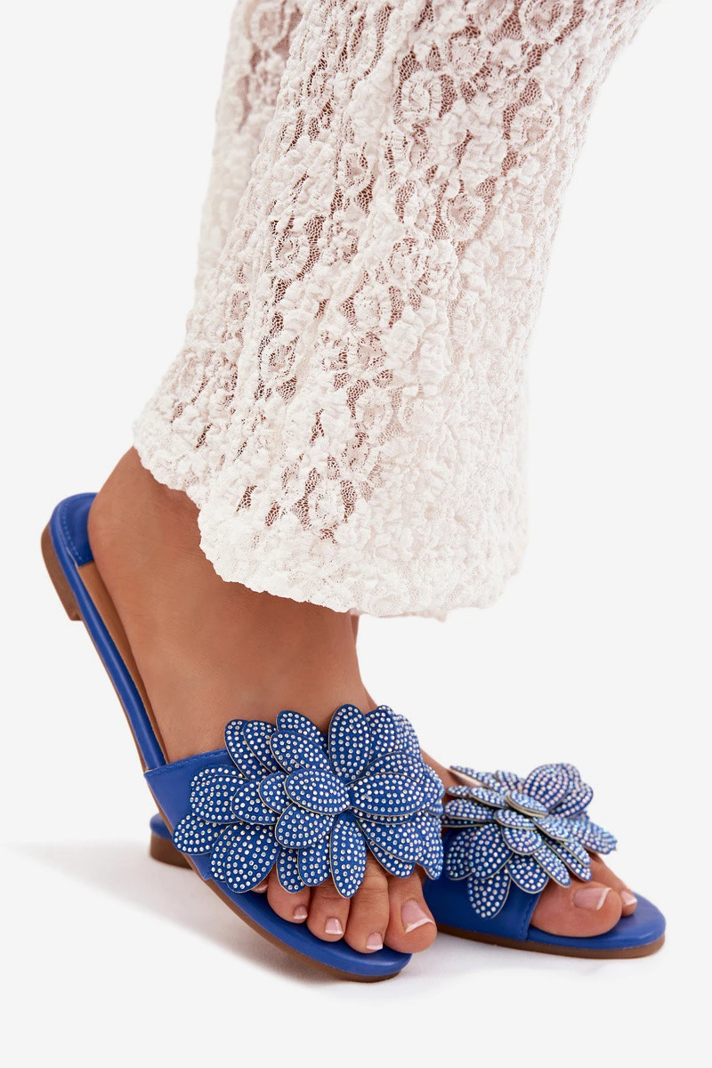 Dámské ploché modré pantofle s ozdobou Grelora