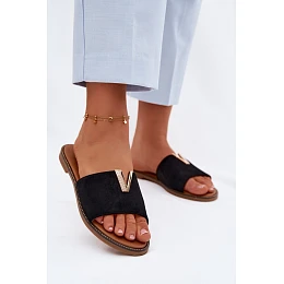 Stylové dámské pantofle vyrobené z eko semiše jsou ideální volbou na letní dny. Plochý tvar zajišťuje maximální pohodlí při nošení, takže se skvěle hodí jak na každý den, tak na dovolené. Model se vyznačuje výrazným zlatým detailem ve tvaru písmena „V“, ozdobeným jemnými cirkoniemi, které krásně třpytí a dodávají celku elegantní charakter. Minimalistická forma v kombinaci s bižuterním akcentem vytváří výjimečný ženský a módní vzhled. Při výběru velikosti se řiďte tabulkou velikostí.