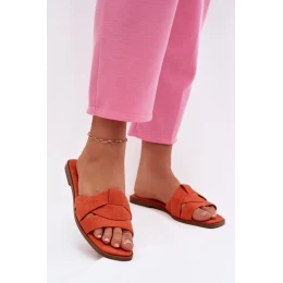 Dámské ploché nazouváky s pásky Eko semiš Oranžové Florane