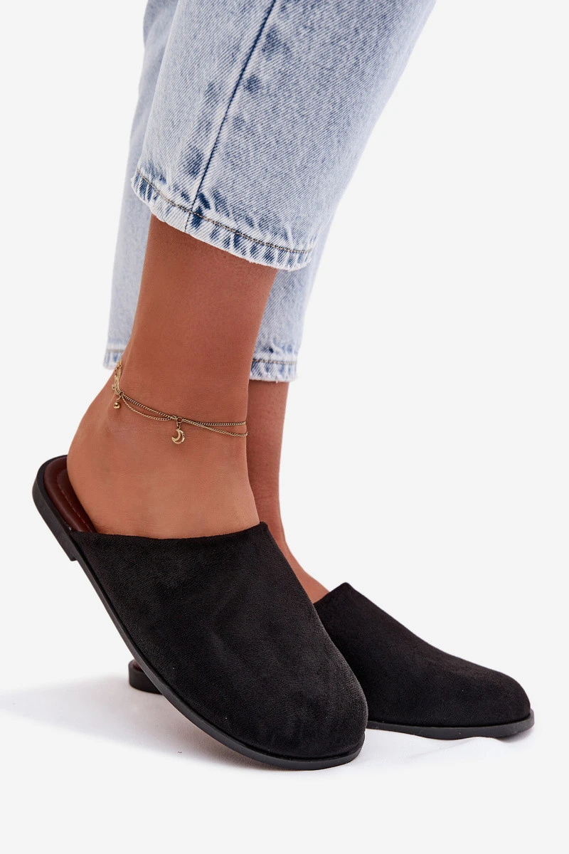 Dámské ploché nazouváky z eko semiše Černé Veronelle