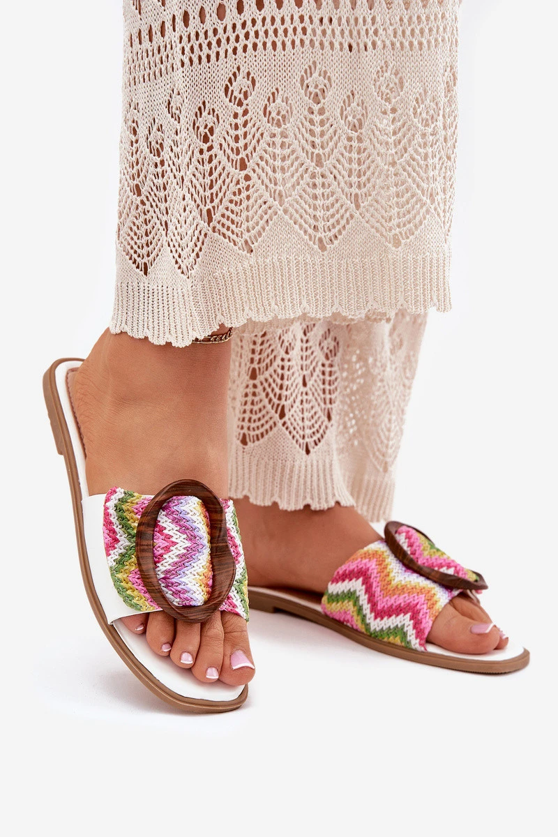 Dámské Ploché Pantofle S Dekorativní Přezkou Bílé Luwam
