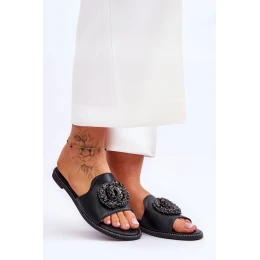 Dámské ploché pantofle s ozdobami S.Barski KV-520-3 Černá