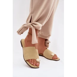 Dámské ploché pantofle z eko semiše jsou stylovým a pohodlným tipem na horké dny. Měkký materiál zajišťuje komfort nošení a ozdobný detail umístěný vpředu dodává celku jemný, ženský charakter. Jednoduchý, plochý střih činí tyto pantofle ideální jak pro každodenní outfity, tak jako elegantní doplněk letních setů. Při výběru velikosti se řiďte tabulkou velikostí.