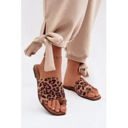 Dámské ploché pantofle s ozdobným detailem z eko semiše s leopardím vzorem model 21951502 - Boto