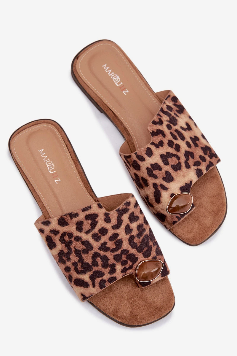 Dámské ploché pantofle s ozdobným detailem z eko semiše s leopardím vzorem Selavine