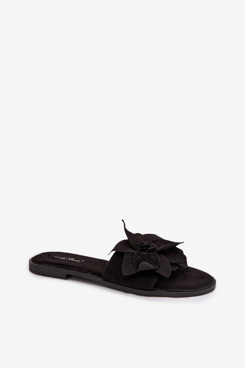 Dámské ploché pantofle s ozdobnými květinami Černé model 22032042 - Boto