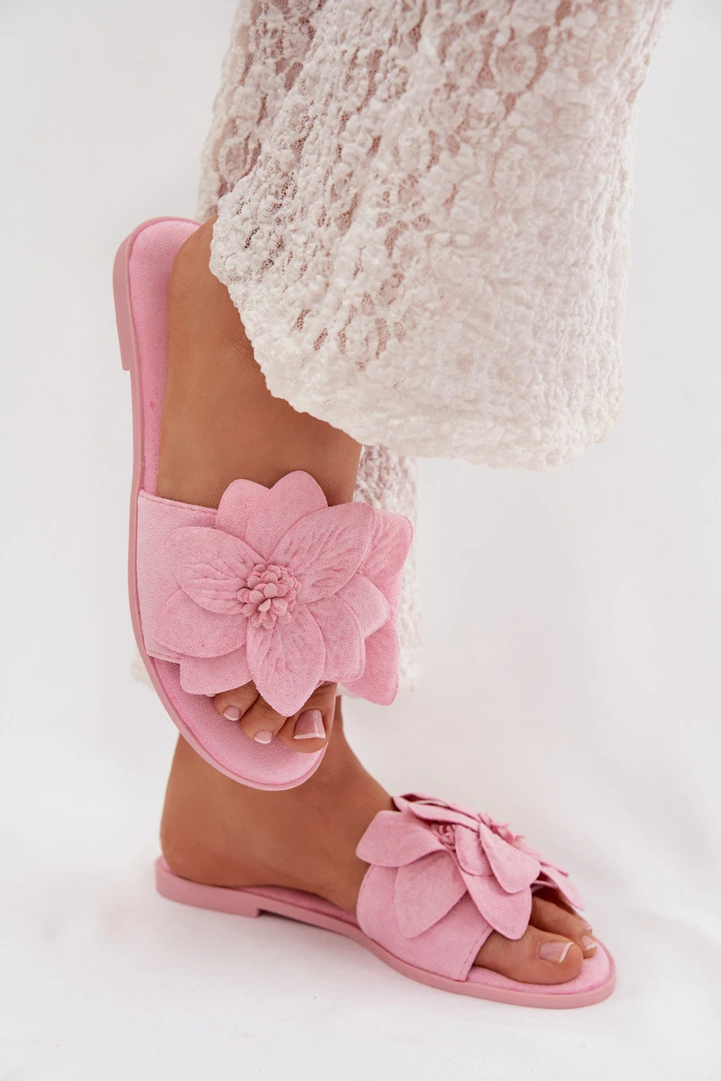 Přidání recenze k Dámské ploché pantofle s ozdobnými květinami Růžové Elzoria