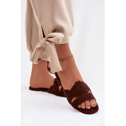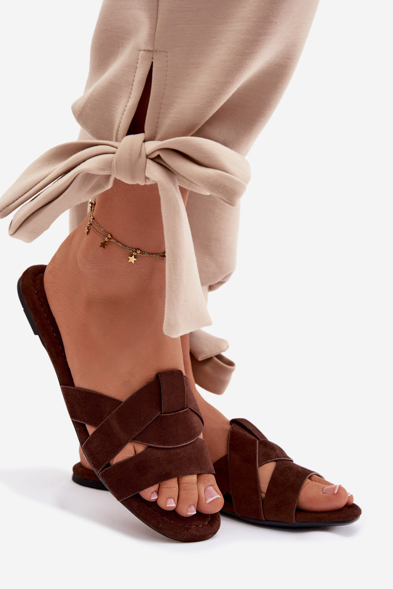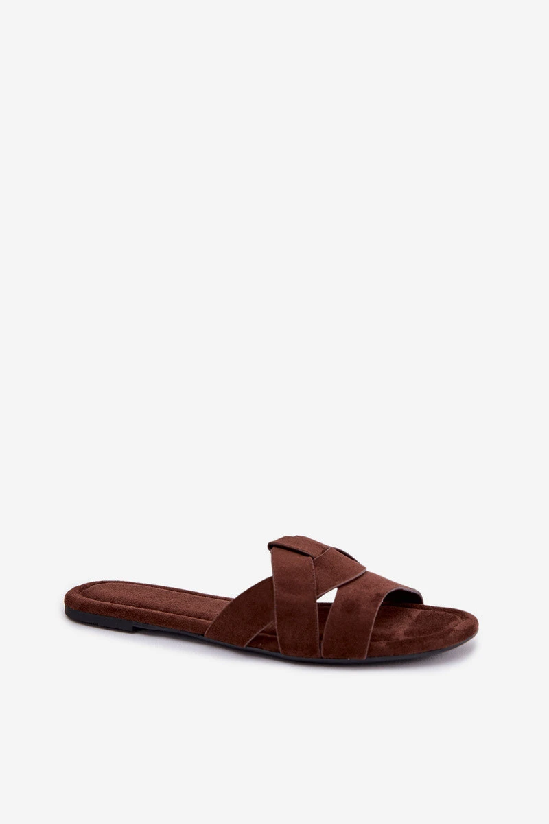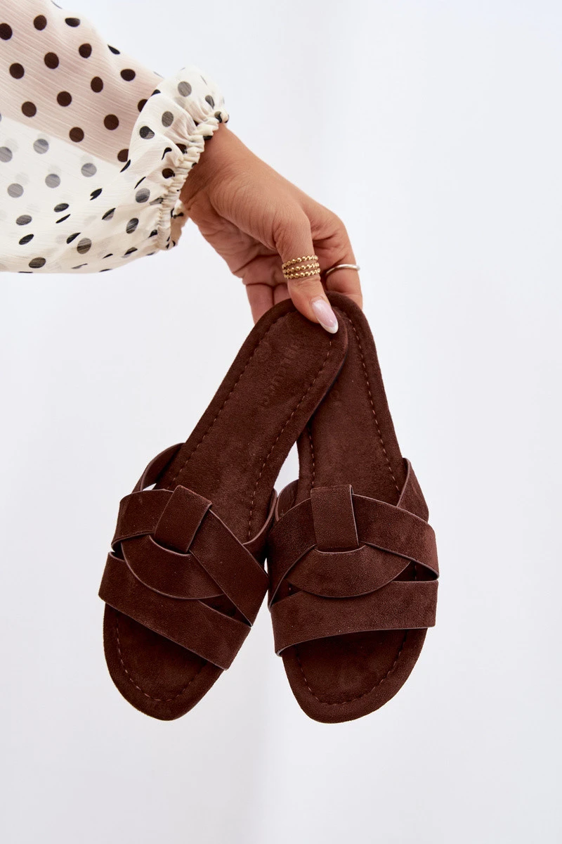 Dámské ploché pantofle s pásky Čokoládové Pavelle