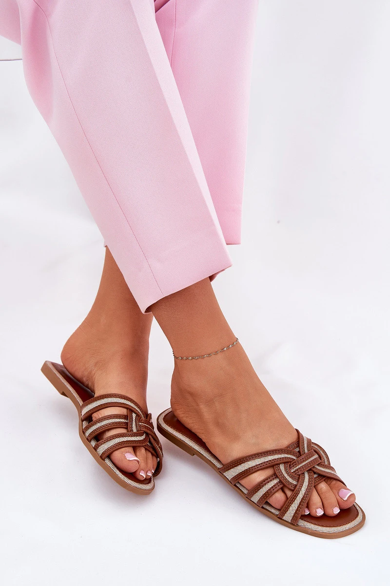 Dámské Ploché Pantofle S Pásky Hnědé model 21689712 - Boto