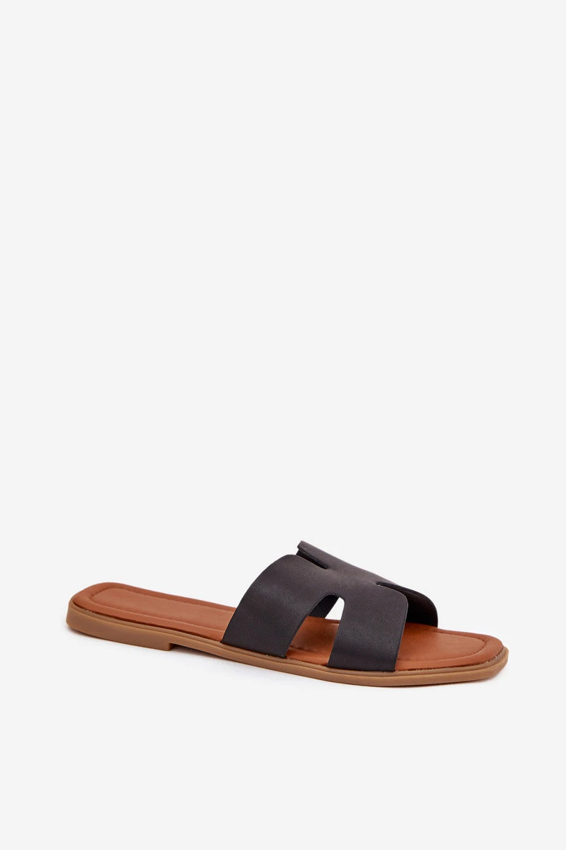 Dámské ploché pantofle s výřezy – černé