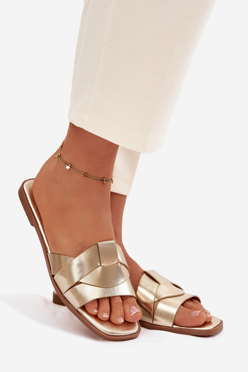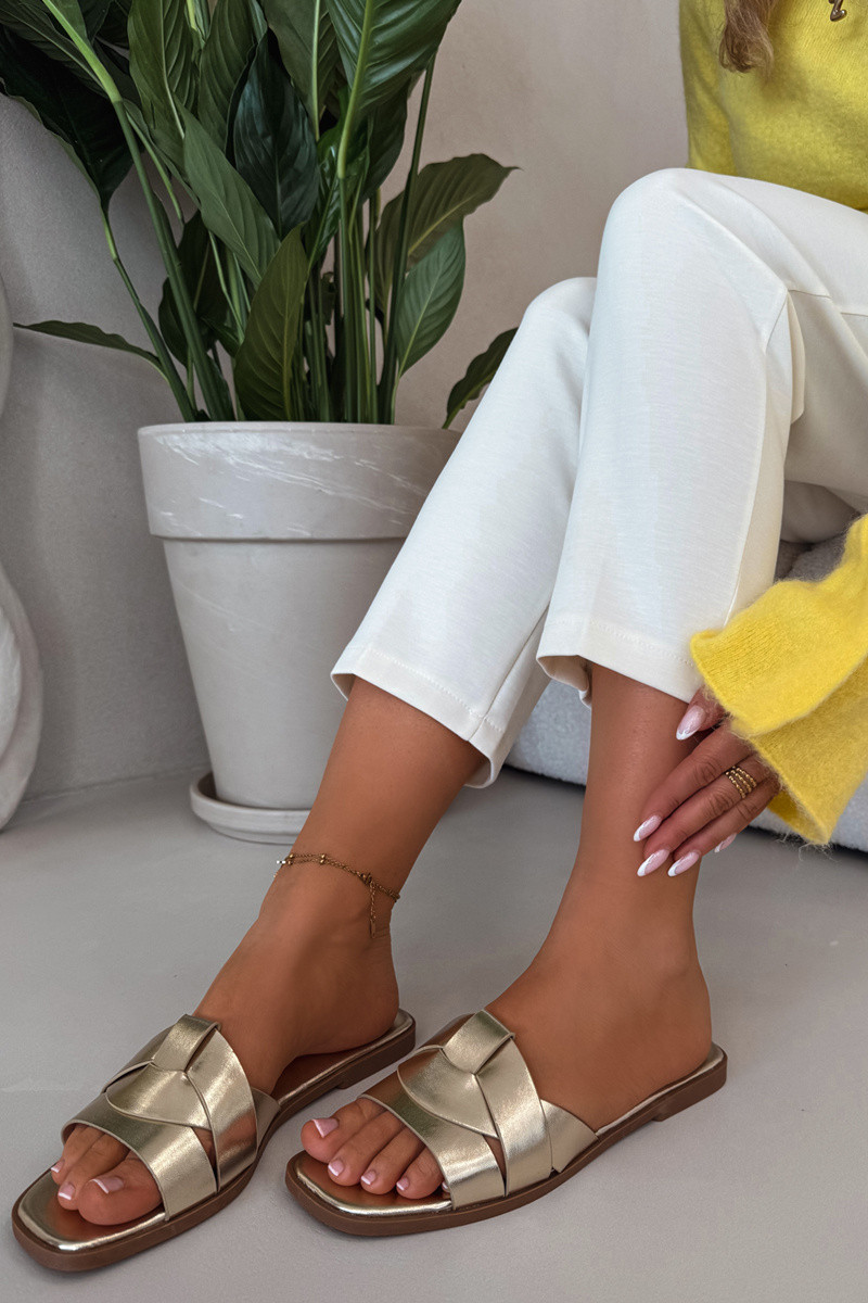 Dámské ploché pantofle s zlatými pásky model 21937376 - Boto