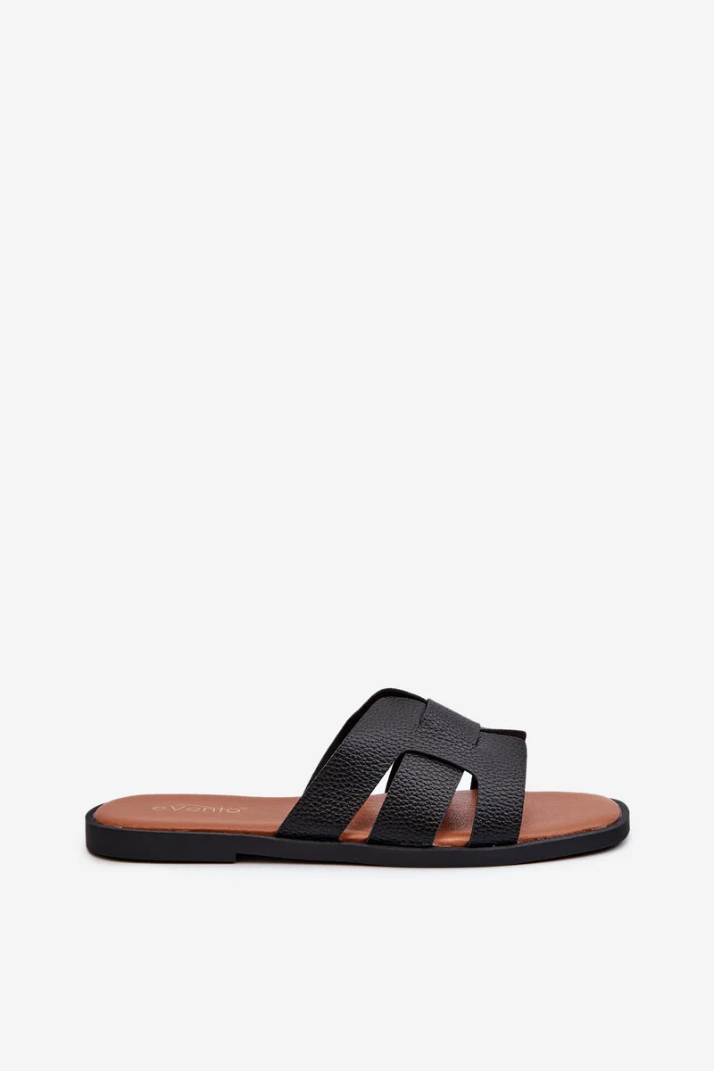 Dámské ploché pantofle vyrobené z eko kůže, černá Risamay