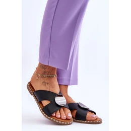 Dámské klasické žabky jsou vyrobeny z vysoce kvalitní eko kůže. Tento model má po stranách výřezy a uprostřed zdobení ve tvaru kruhu. Žabky se nazouvají a jsou nasazeny na plochém podpatku. Platformu navíc zdobily cvočky. Měkká stélka je rovněž vyrobena z eko kůže. Při výběru velikosti se řiďte tabulkou velikostí.