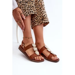 Dámské Ploché Sandály S Ozdobami Sergio Leone SK072H Hnědé