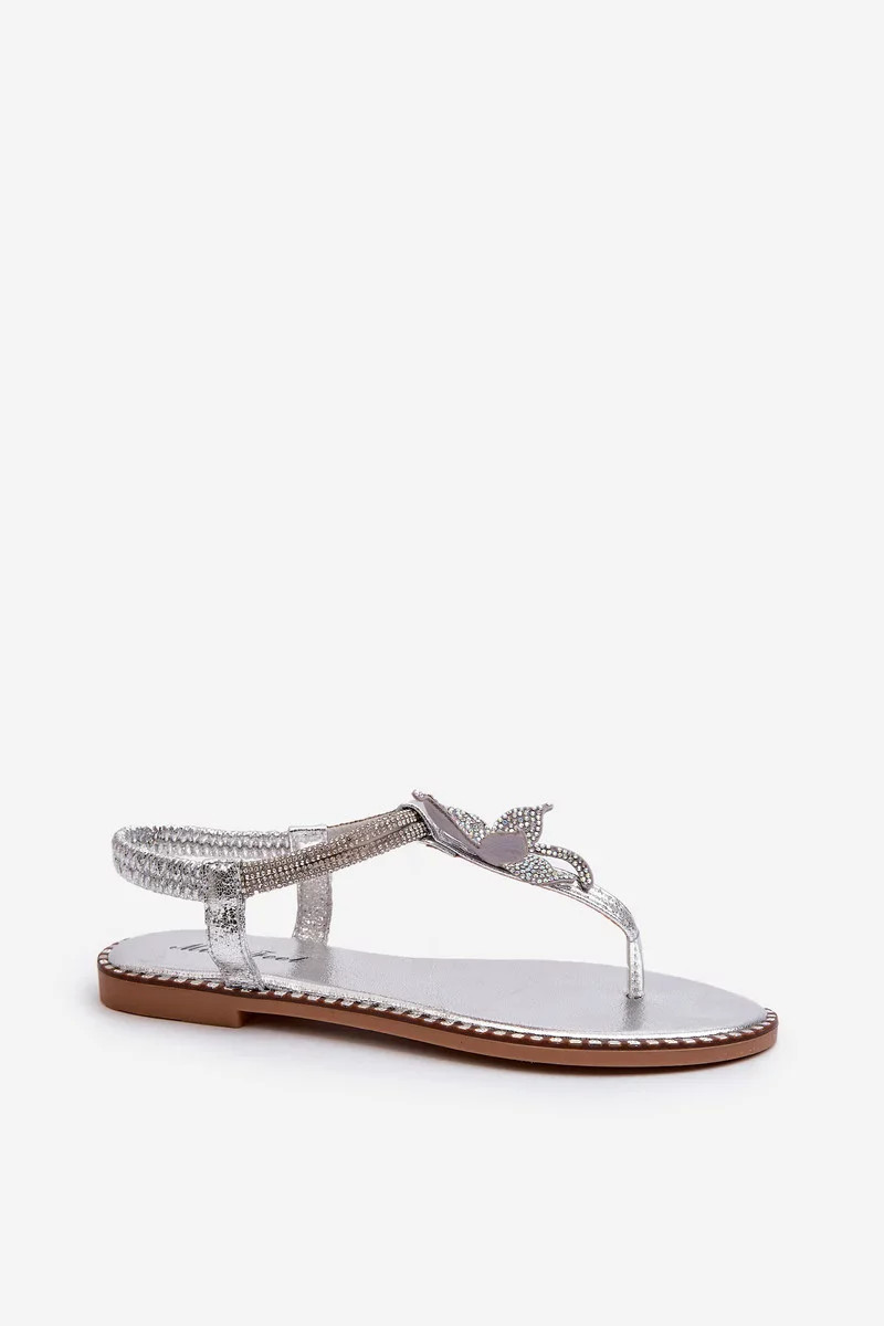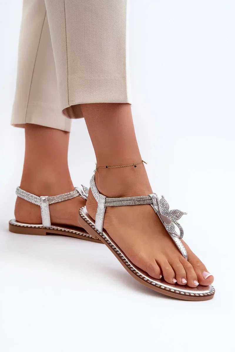 Dámské ploché sandály s ozdobnou květinou Silver Edoni