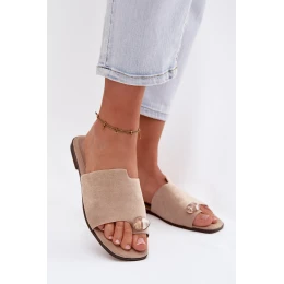 Dámské ploché pantofle z eko semiše jsou stylovým a pohodlným tipem na horké dny. Měkký materiál zajišťuje komfort nošení a ozdobný detail umístěný vpředu dodává celku jemný, ženský charakter. Jednoduchý, plochý střih činí tyto pantofle ideální jak pro každodenní outfity, tak jako elegantní doplněk letních setů. Při výběru velikosti se řiďte tabulkou velikostí.