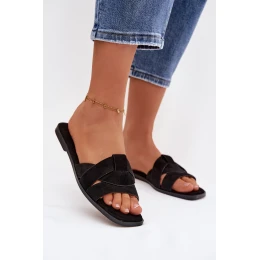 Dámské ploché sandály s pásky Eko semiš Černé model 21943346 - Boto