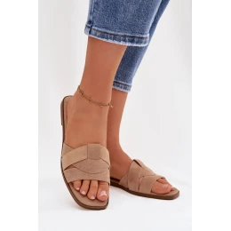 Dámské ploché sandály s pásky Eko Zamszové Béžové model 21943325 - Boto