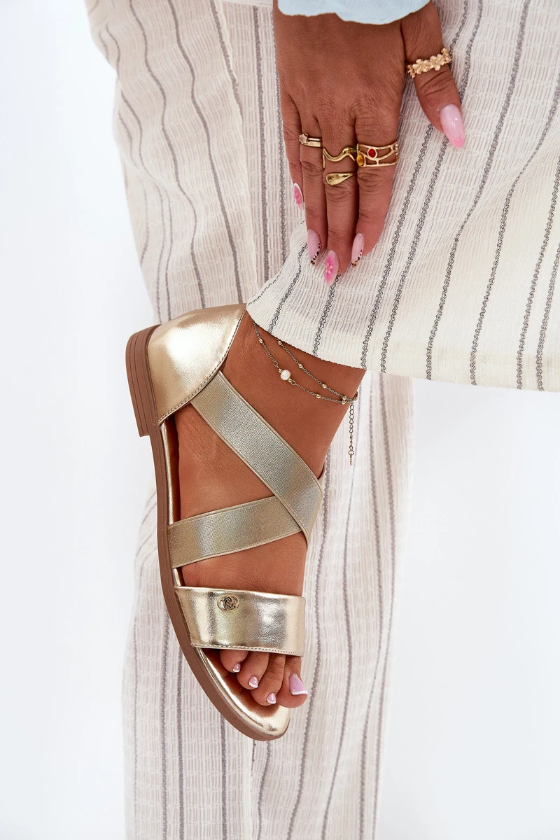 Dámské ploché sandály s pásky zlaté model 21696940 - EVENTO