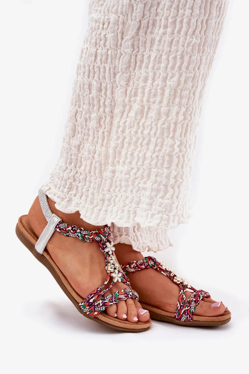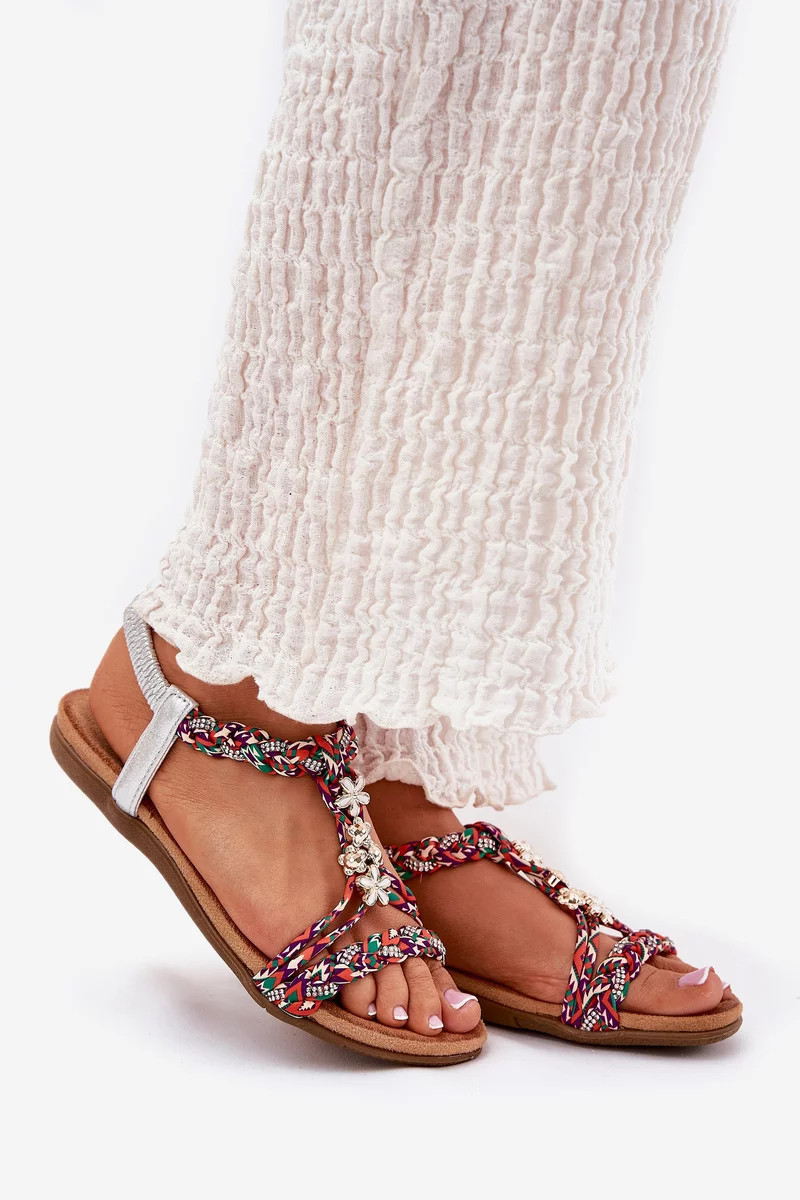 Dámské ploché sandály s pletenými pásky a ozdobnými připínkami Artiker – multikolor
