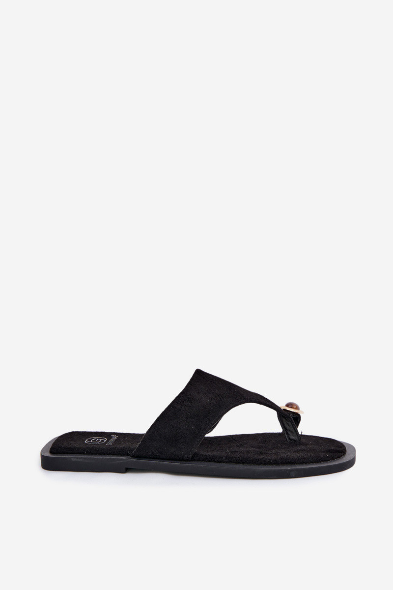 Dámské pantofle z eko semiše jsou pohodlným a stylovým řešením na teplé dny. Ploché provedení zajišťuje komfort při nošení, díky čemuž se model skvěle hodí pro každodenní použití – jak ve městě, tak na dovolené. Typ japonek je doplněn efektním bižuterním detailem, který přitahuje pozornost a dodává celkovému vzhledu elegantní charakter. Jedná se o jemný akcent, který odlišuje pantofle od klasických modelů. Měkká vložka zvyšuje pohodlí a přizpůsobí se noze, zajišťujíc pohodlí i během dlouhého dne. Ideální obuv pro ženy, které ocení spojení pohodlí, lehkosti a elegantního vzhledu. Při výběru velikosti se řiďte tabulkou velikostí.