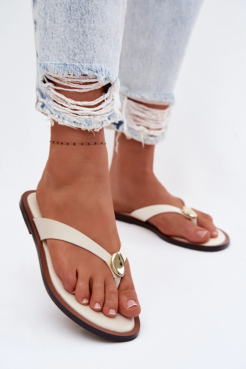 Dámské ploché žabky se zlatým detailem Světle béžové Tella