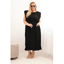Dámské plus size viskózové plisované šaty s vázáním černá