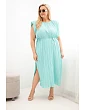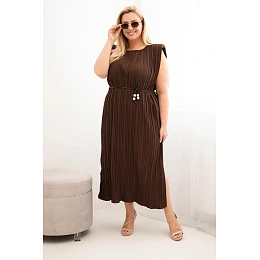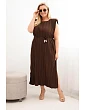 Dámské Plus Size viskózové plisované šaty s vázáním hnědá
