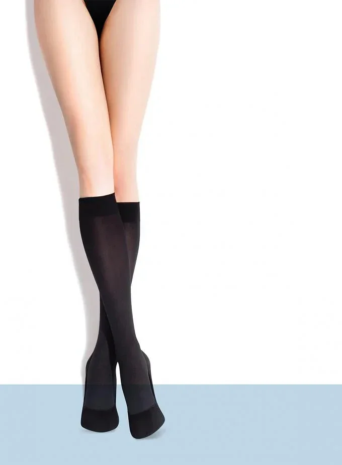Hladké dámské netlačící podkolenky, které jsou vyrobené z mikrovlákna s jemností 60 DEN.
