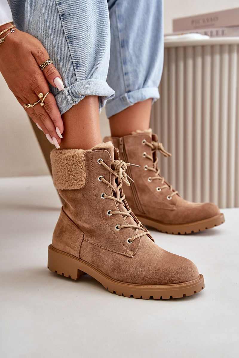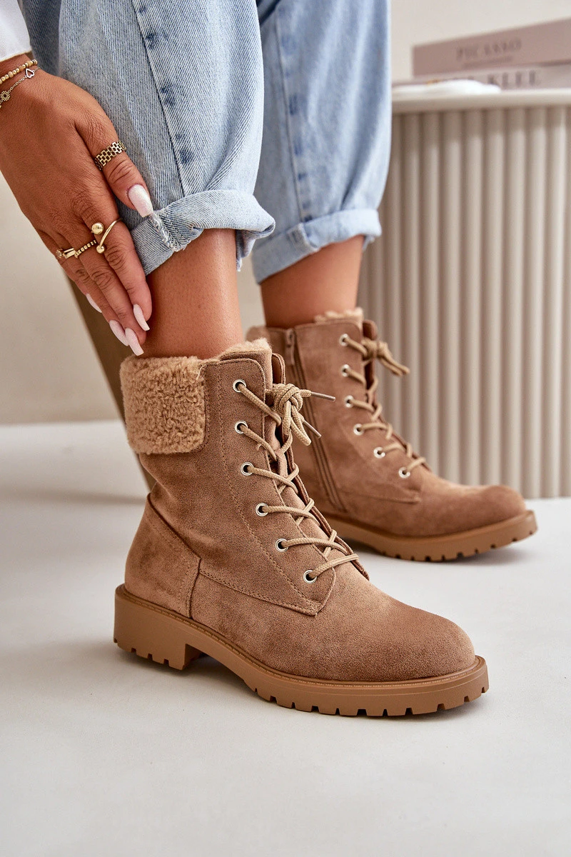 Dámské boty byly vyrobeny z hebkého ekologického semiše. Oteplená obuvním polštářkem a kožešinou. Umístěné na plochém podpatku a platformě. Špičky zaoblené, zesílený špičkový zámek. Model na zip se šněrováním. Při výběru velikosti se řiďte tabulkou velikostí.