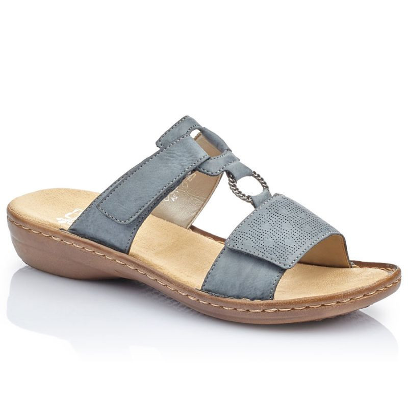 Dámské pohodlné modré žabky na suchý zip Rieker 60885-12