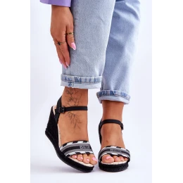 Dámské pohodlné sandály na klínu Big Star model 21618108 černé - Big Star Shoes