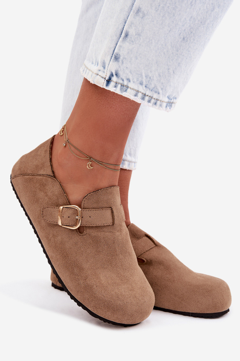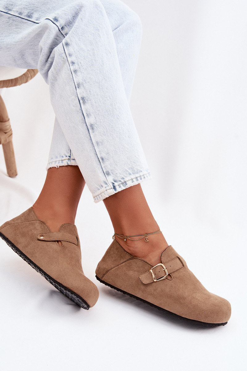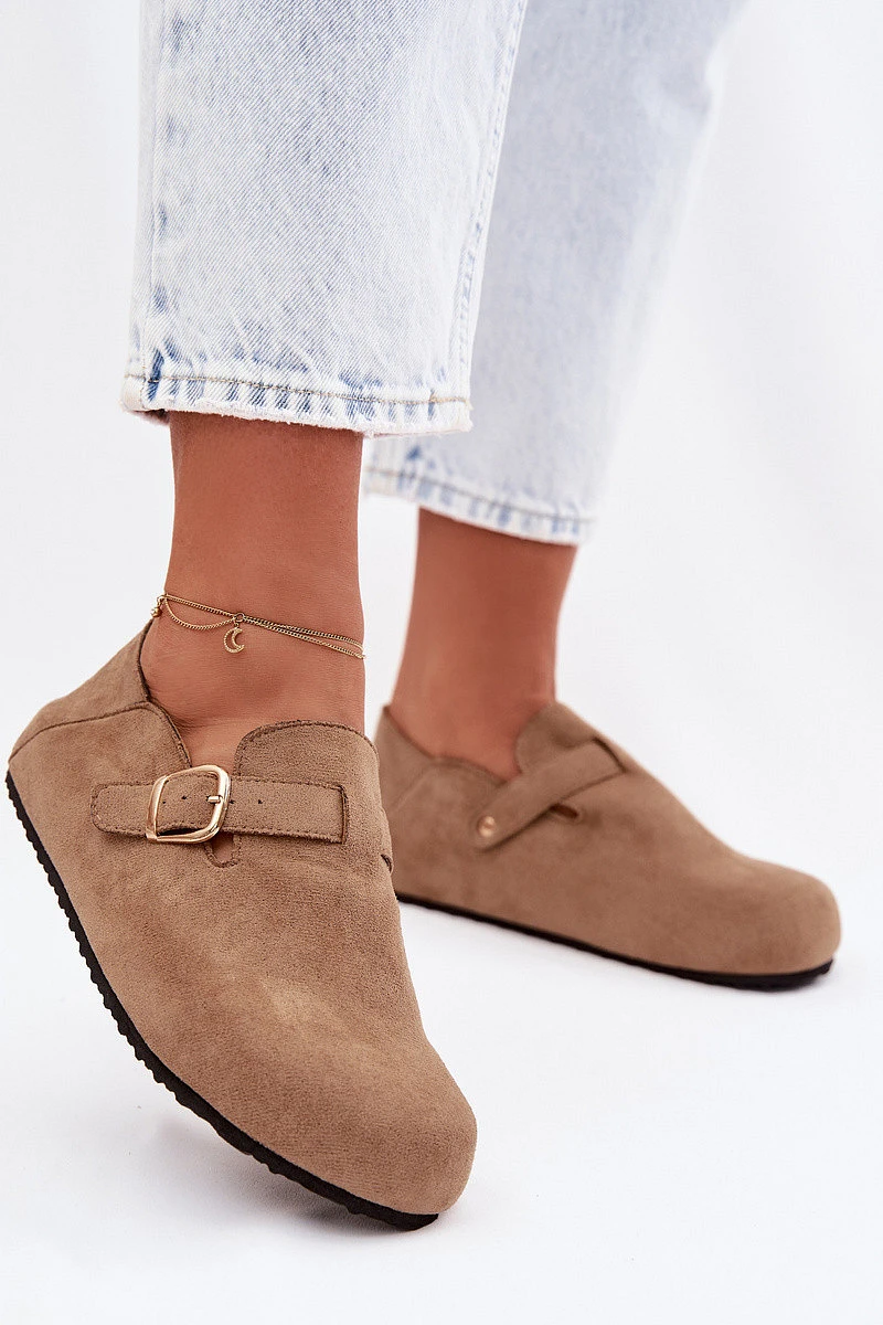 Dámské polobotky ve stylu nazouváků vyrobené z eko semiše představují spojení pohodlí a módního vzhledu. Nášlapný střih umožňuje rychlé obouvání a široké špičky zaručují volnost prstů a pohodlí po celý den. Model doplňuje ozdobný pásek se zlatou přezkou, který dodává stylový akcent a zdůrazňuje charakter obuvi. Profilovaná, měkká vložka se přizpůsobí noze, zvyšuje komfort a činí tyto polobotky ideální pro každodenní outfity. Při výběru velikosti se řiďte tabulkou velikostí.
