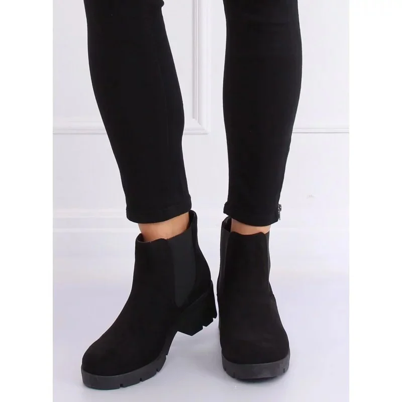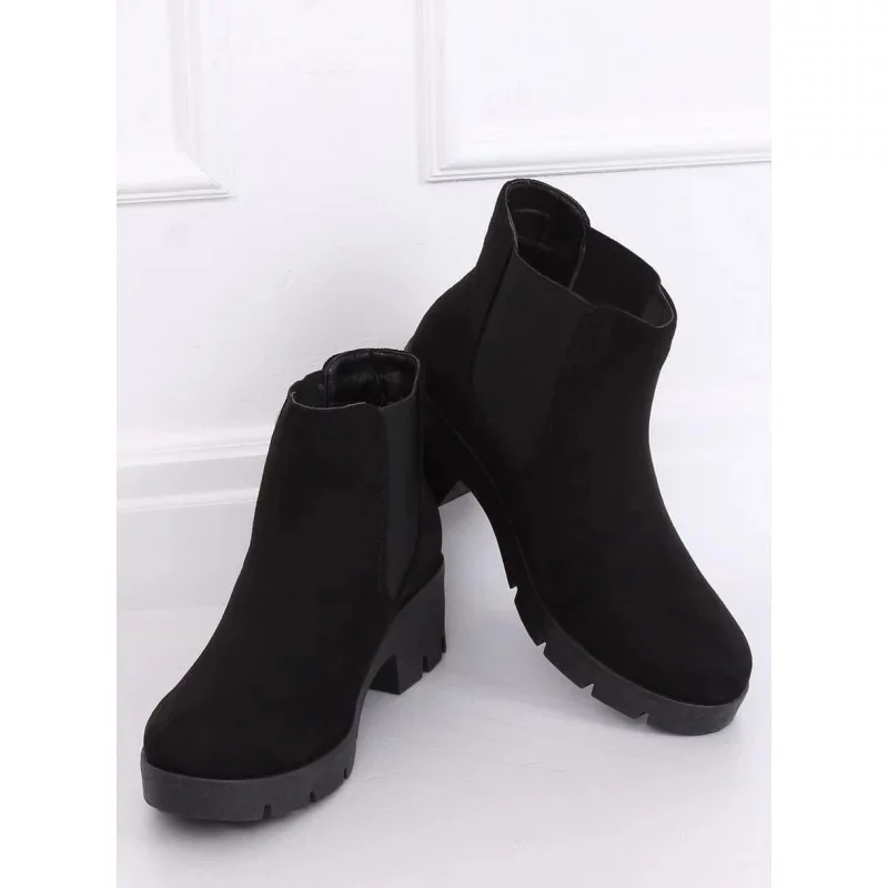 Dámské boty na širokém podpatku s výškou 5 a platformě 2 cm. Mají černou, klasickou barvu a nadčasový střih s elastickými bočními vložkami, které zajišťují pohodlné nošení. Model je velmi univerzální a lze ho snadno přizpůsobit mnohým stylem.