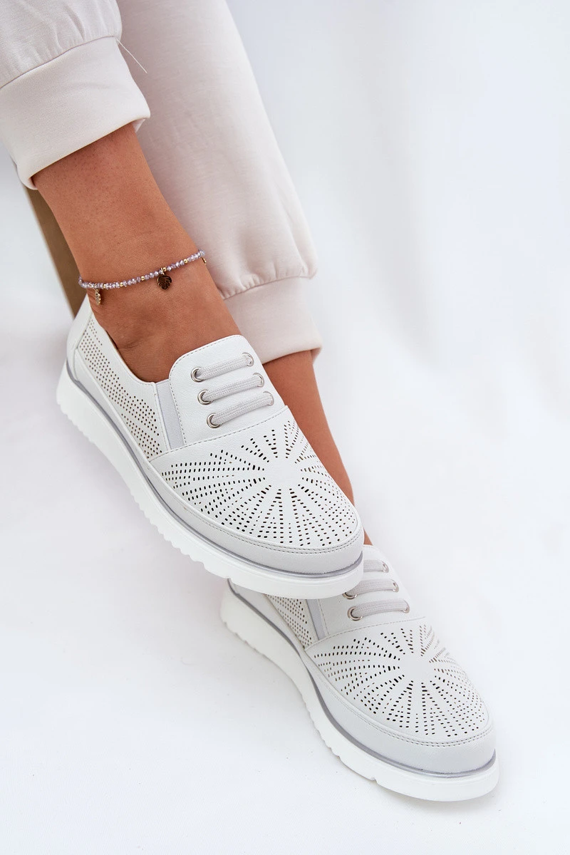 Dámské perforované polobotky z eko kůže, které spojují styl a pohodlí. Nazouvací, se gumovými šňůrkami, které usnadňují obouvání a svlékání. Zaoblené špičky. Měkká kožená stélka zaručuje pohodlí po celý den. Lehké a pohodlné, tyto boty budou skvělou volbou pro každodenní styling, spojující módní vzhled s funkčností. Při výběru velikosti se řiďte tabulkou velikostí.EAN čárové kódy zboží jsou: