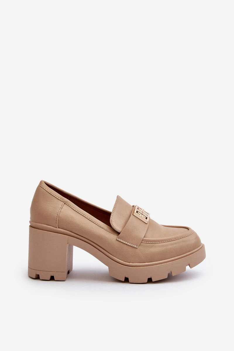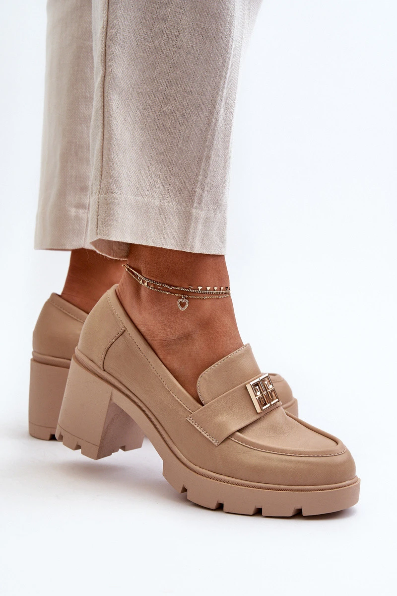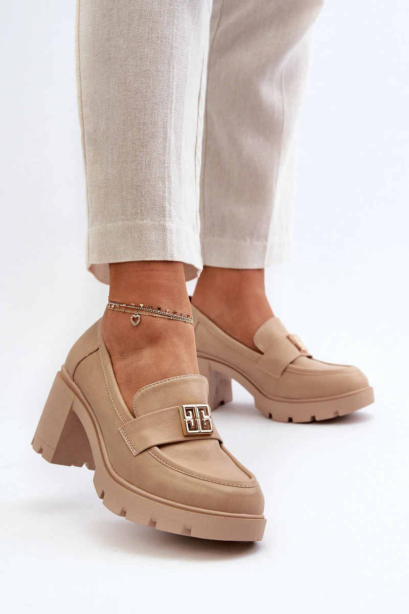 Dámské polobotky na masivním podpatku s ozdobou Beige model 21655247 - Boto