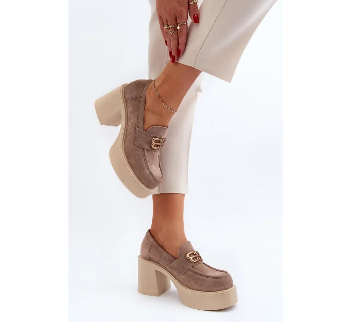Dámské polobotky na podpatku 20170 / 193930 Béžová s ecru - ZaZoo
