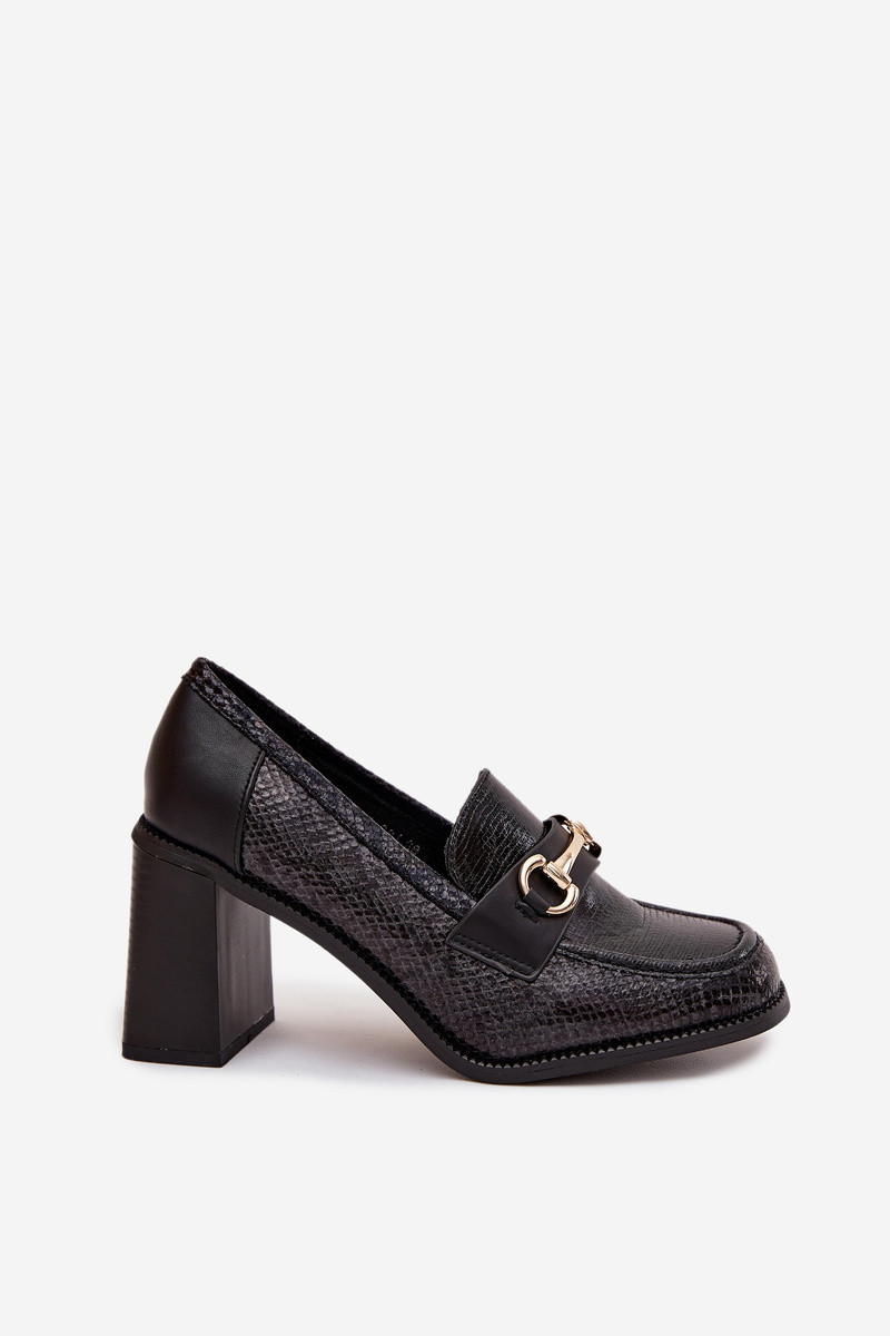 Dámské polobotky na podpatku s reliéfem a zlatým detailem Černé Novella