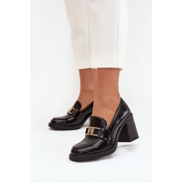 Dámské polobotky na podpatku se zlatým detailem černé model 21710793 - Boto