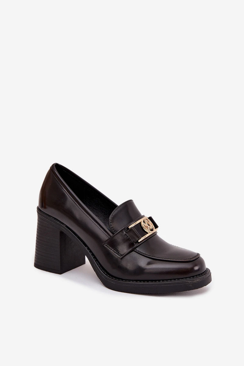 Dámské polobotky na podpatku se zlatým detailem čokoládové model 21710786 - Boto