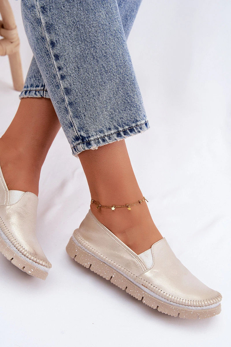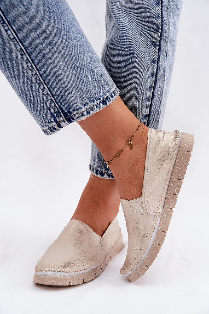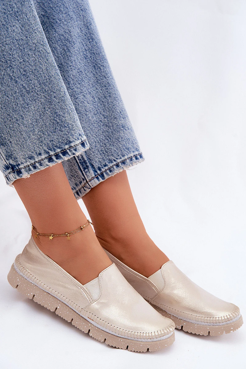 Dámské polobotky nazouvací kožené zlaté model 22122600 - Maciejka