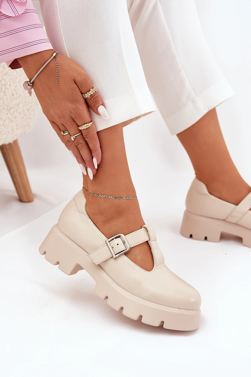 Přidání recenze k Dámské Polobotky S Přezkou Na Platformě A Plochém Podpatku Béžové Venda