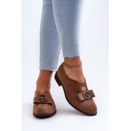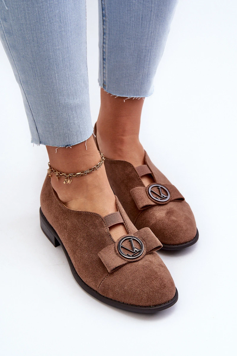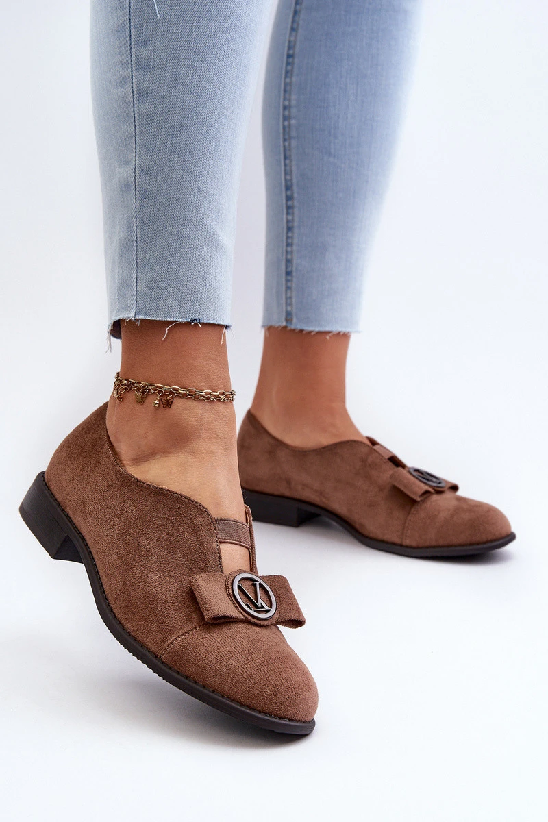 Dámské polobotky z ekokože s nízkým podpatkem a ozdobou hnědé Hadiena