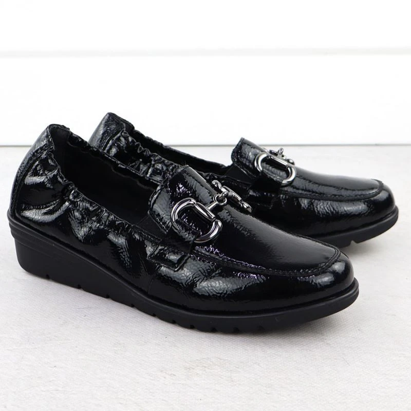 Dámské polobotky z lakované kůže na platformovém podpatku černé Rieker L5352-00