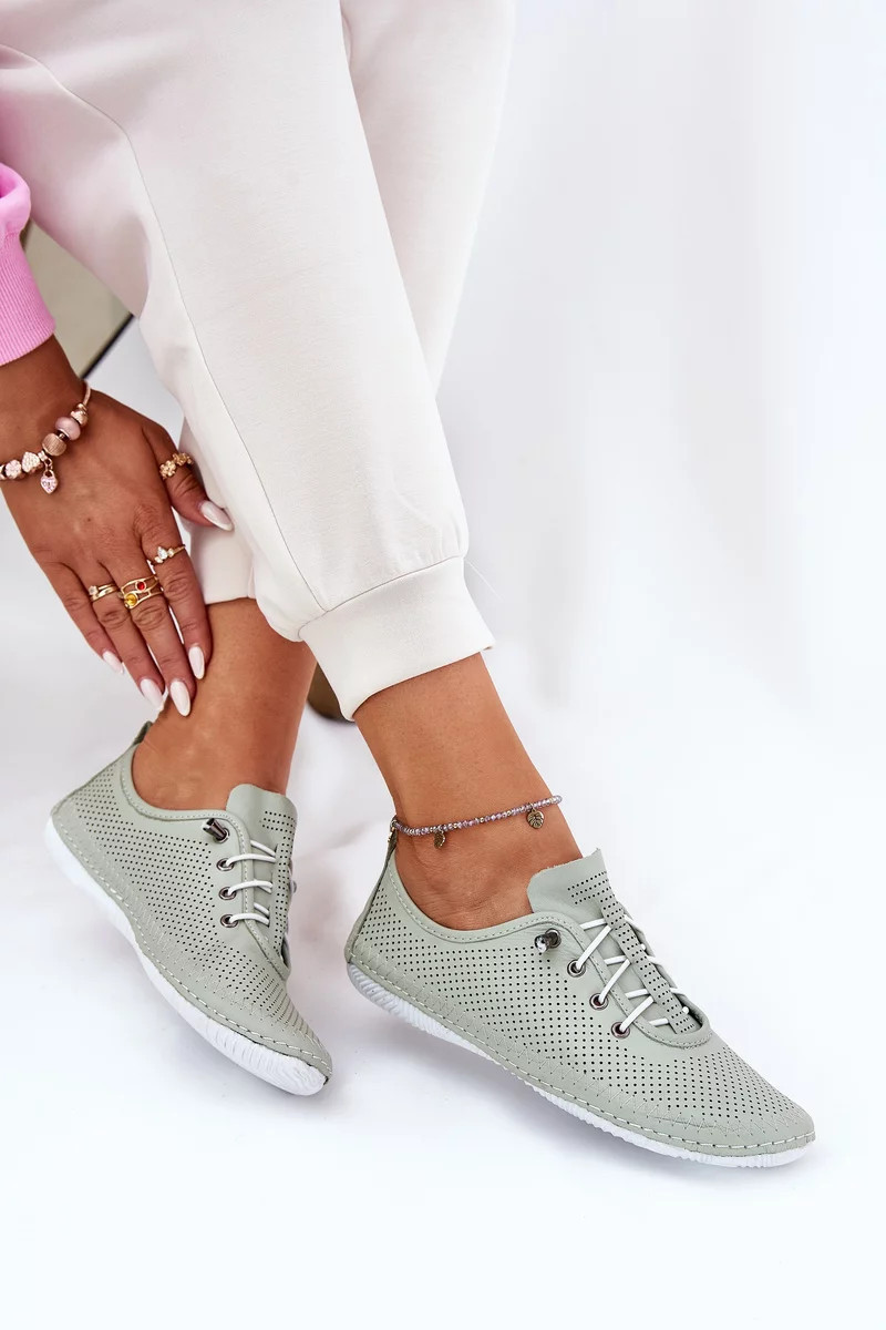 Dámské polobotky z přírodní kůže Artiker – světle zelené