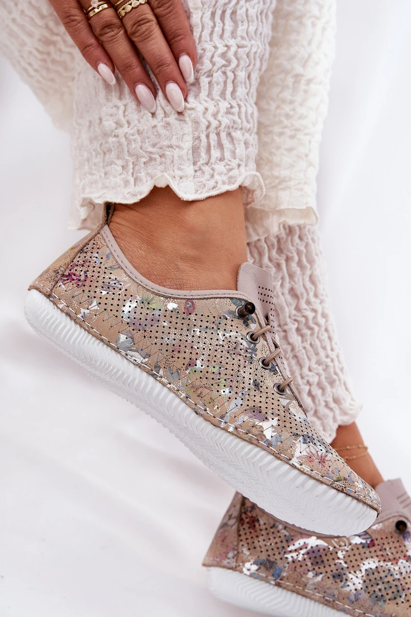 Dámské Polobotky Z Přírodní Kůže Vzorované model 21691796 Béžové - Artiker