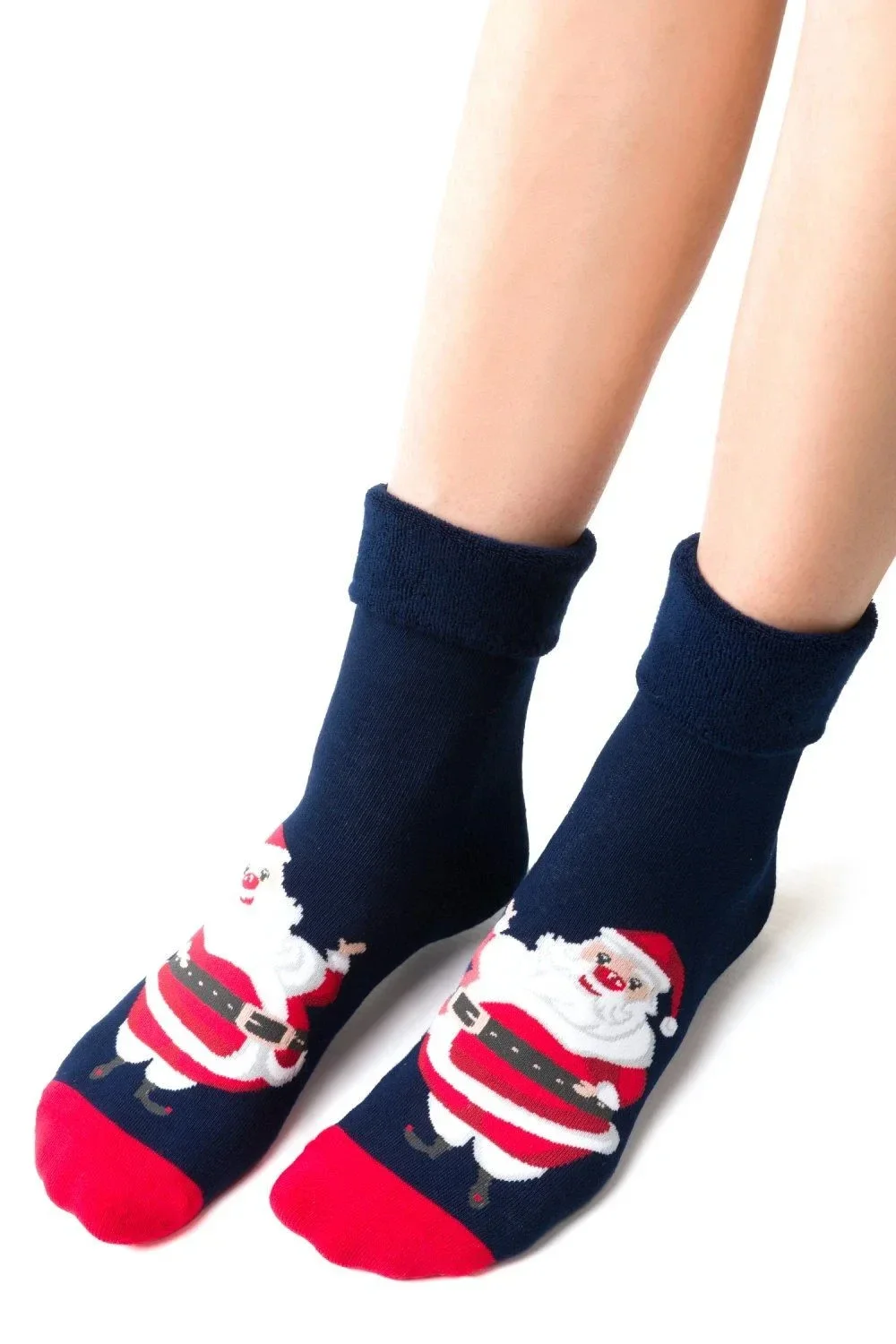 Dámské ponožky 030 042 Steven - tmavě modrá barva - z vysoce kvalitní froté bavlny - vánoční motiv - měkké a hřejivé - přehnutý horní lem