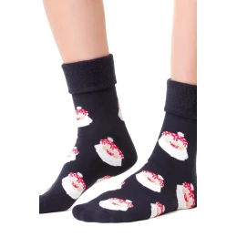 Dámské ponožky 030 048 Steven - tmavě modrá barva - z vysoce kvalitní froté bavlny - vánoční motiv - měkké a hřejivé - přehnutý horní lem